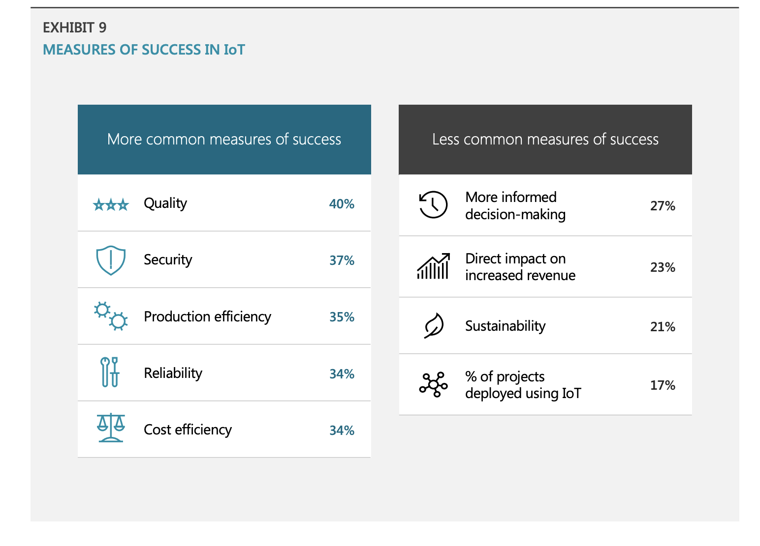 Tra il campione intervistato il 90% ha adottato l’IoT per una serie di usi che portano a una maggiore efficienza e produttività e il 66% prevede di implementare maggiormente l’IoT nei prossimi anni.